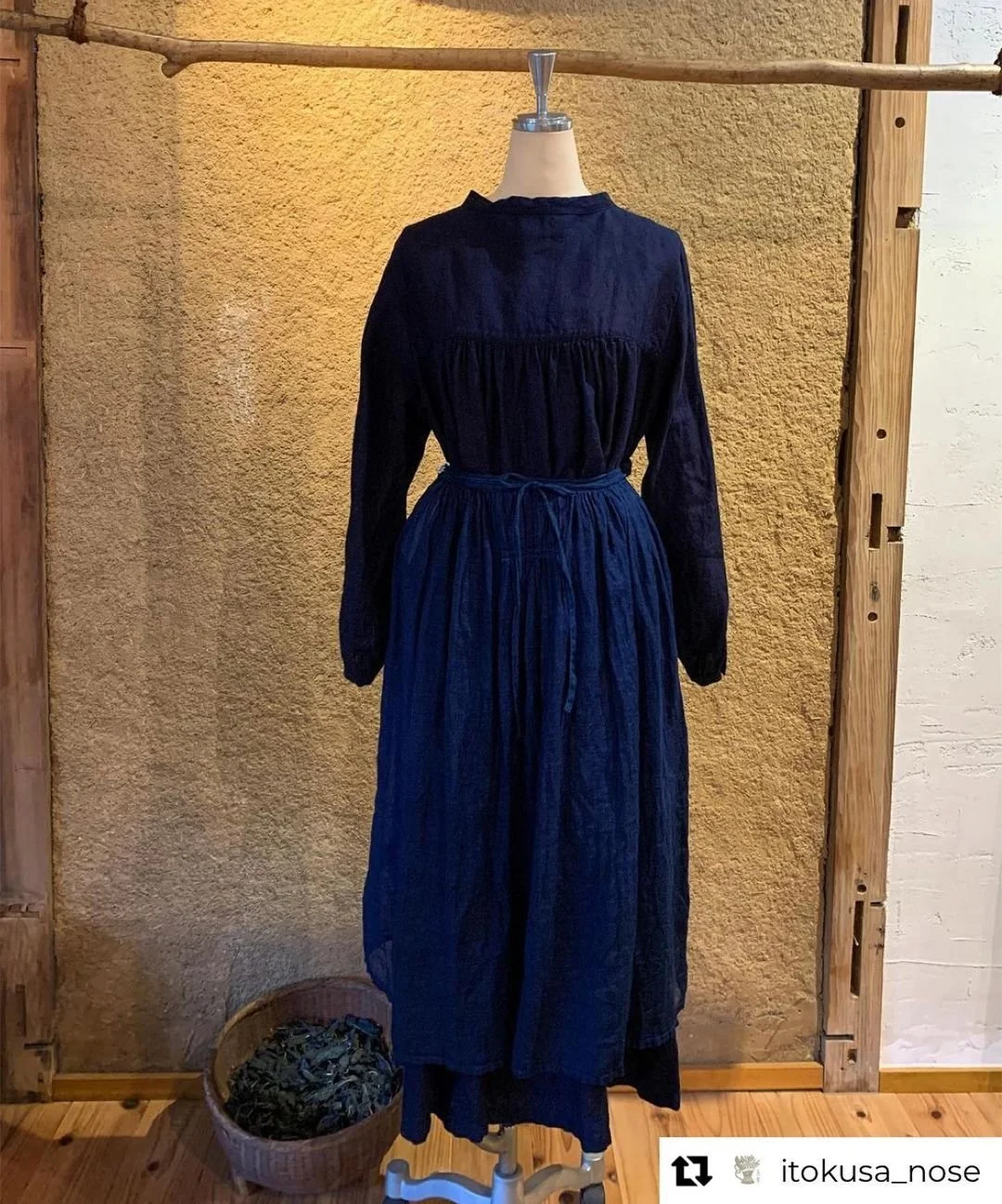 薬を服用するといいますが、藍の洋服はその役目を果たせる衣として、薬を処方するかの如く提案をしていきたいとの想いで創り続けています。どうぞ味わい深い自分だけの藍色に長くおつき合いください。